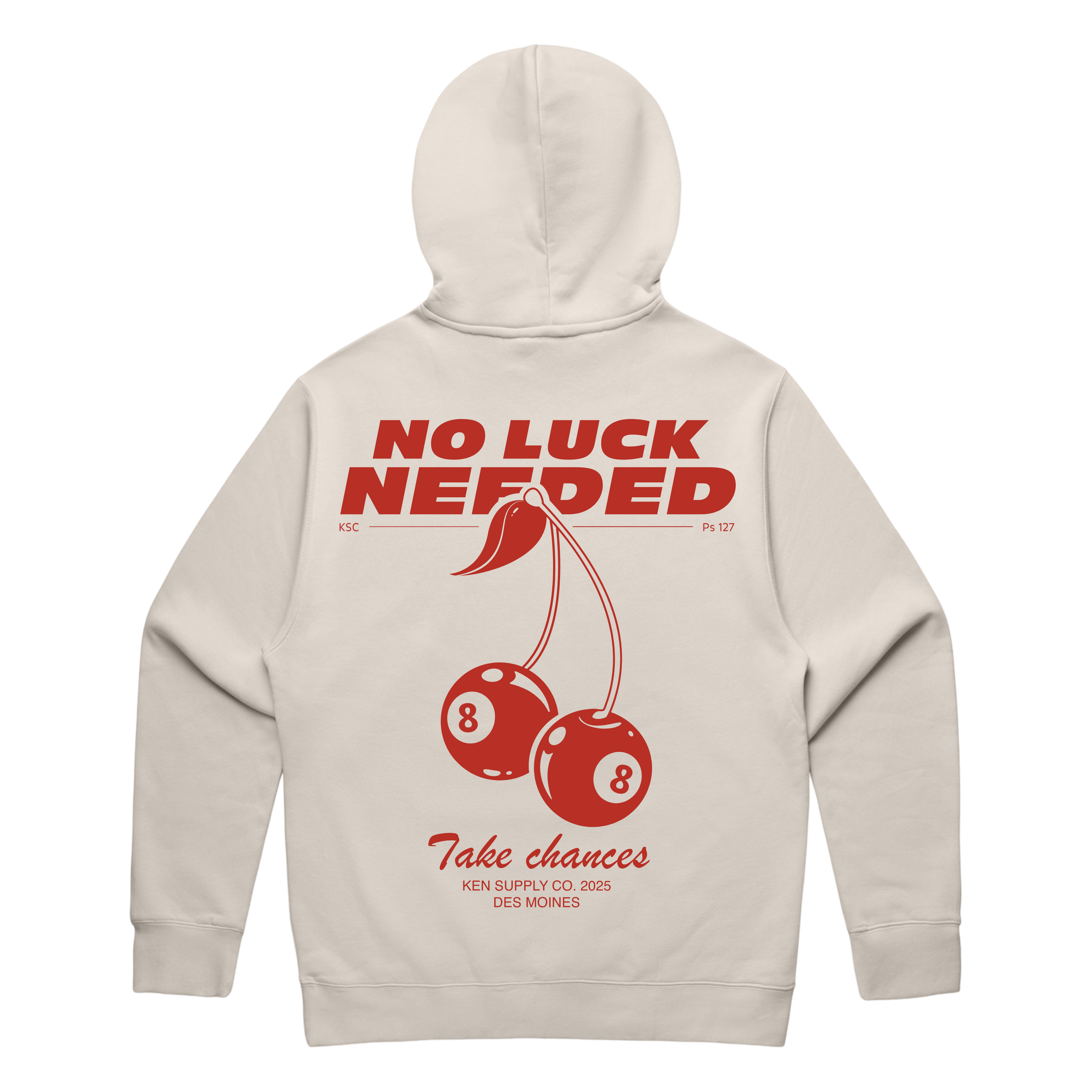 The No Luck Needed Hoodie is a statement piece for those who don’t leave their future up to chance. Featuring two cherries that double as 8 balls, the design flips superstition on its head — a bold reminder that faith and hard work are what drive real progress. The phrase "No Luck Needed" says it all.