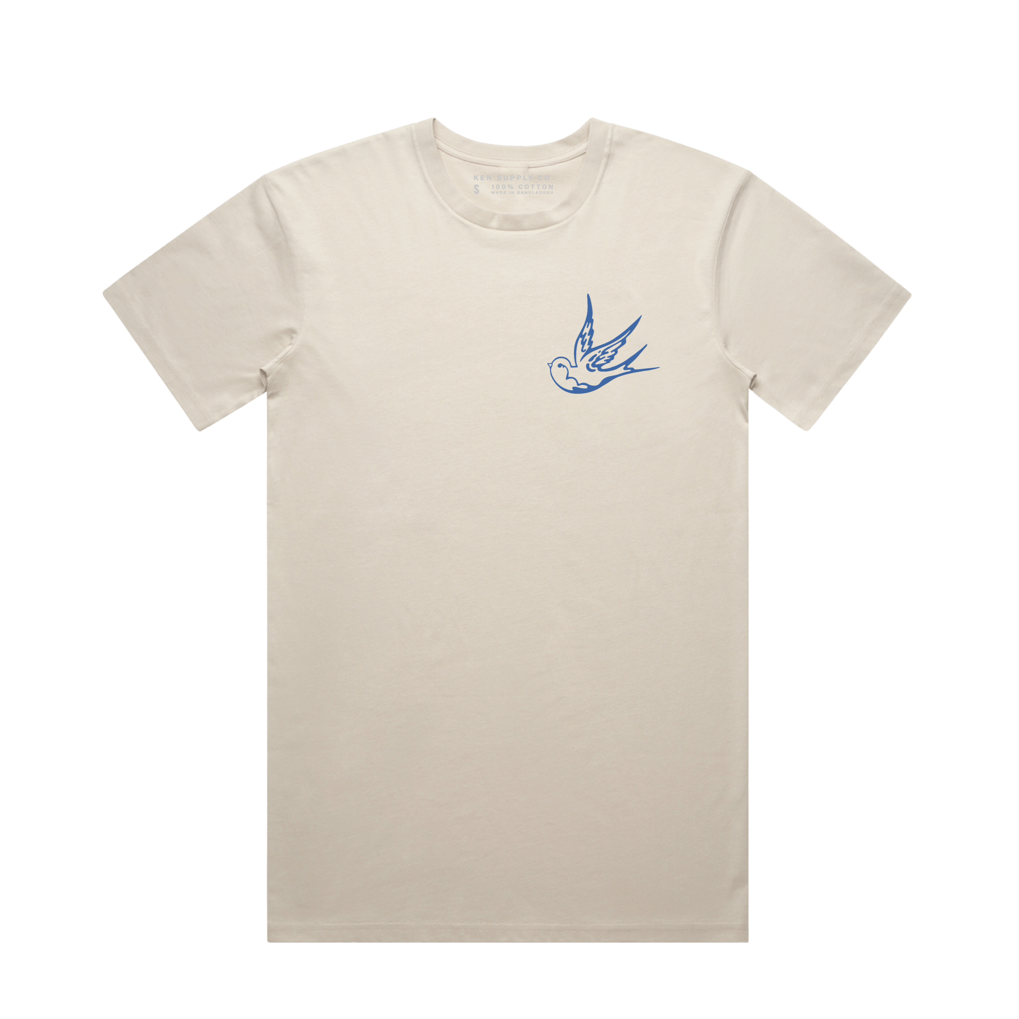 Designed in a regular fit, crafted from light-weight 100% cotton in a bone and blue colorway, this tee offers breathable comfort with a clean, effortless look. Staying true to core Ken Supply Co. styling, it's made for those who are always moving forward.