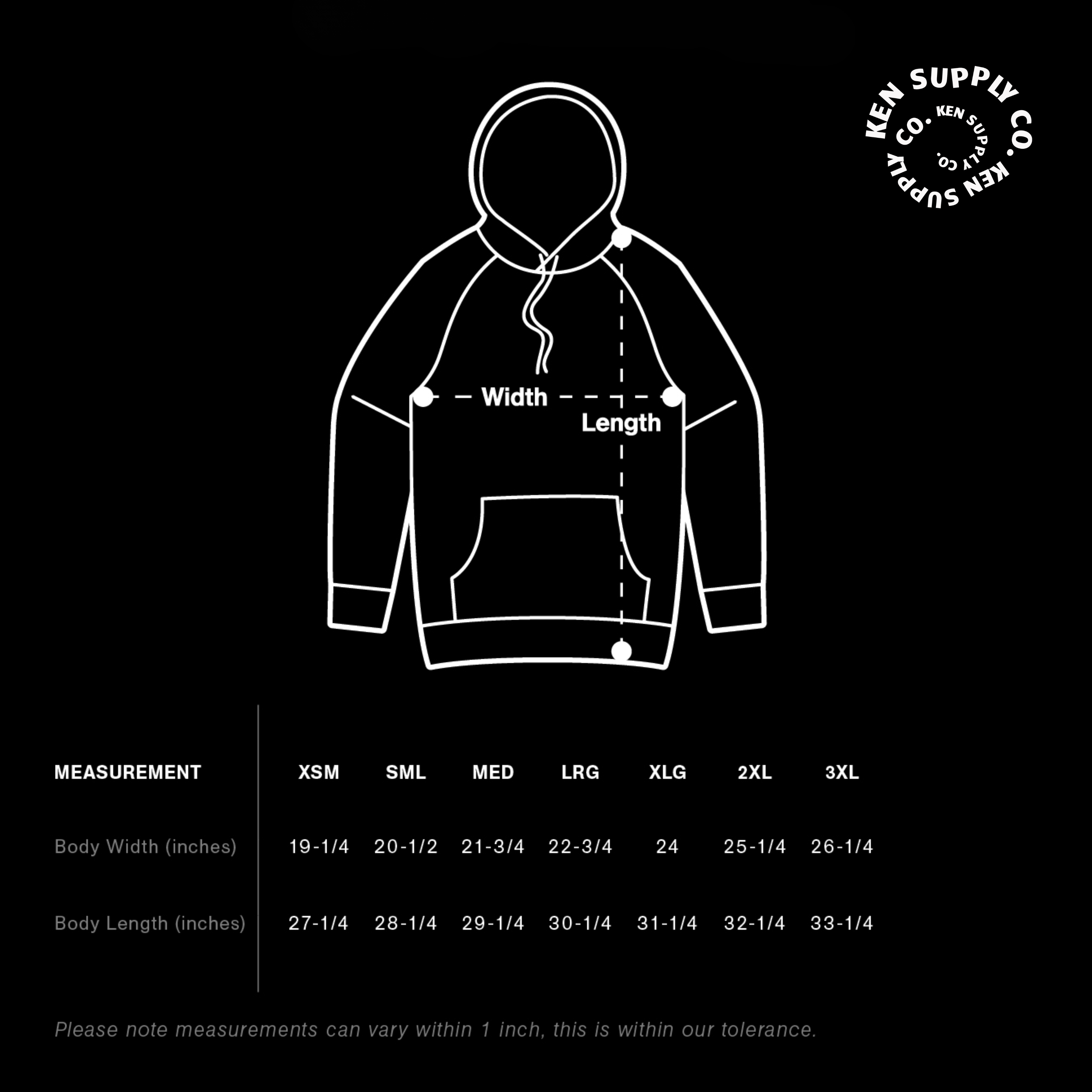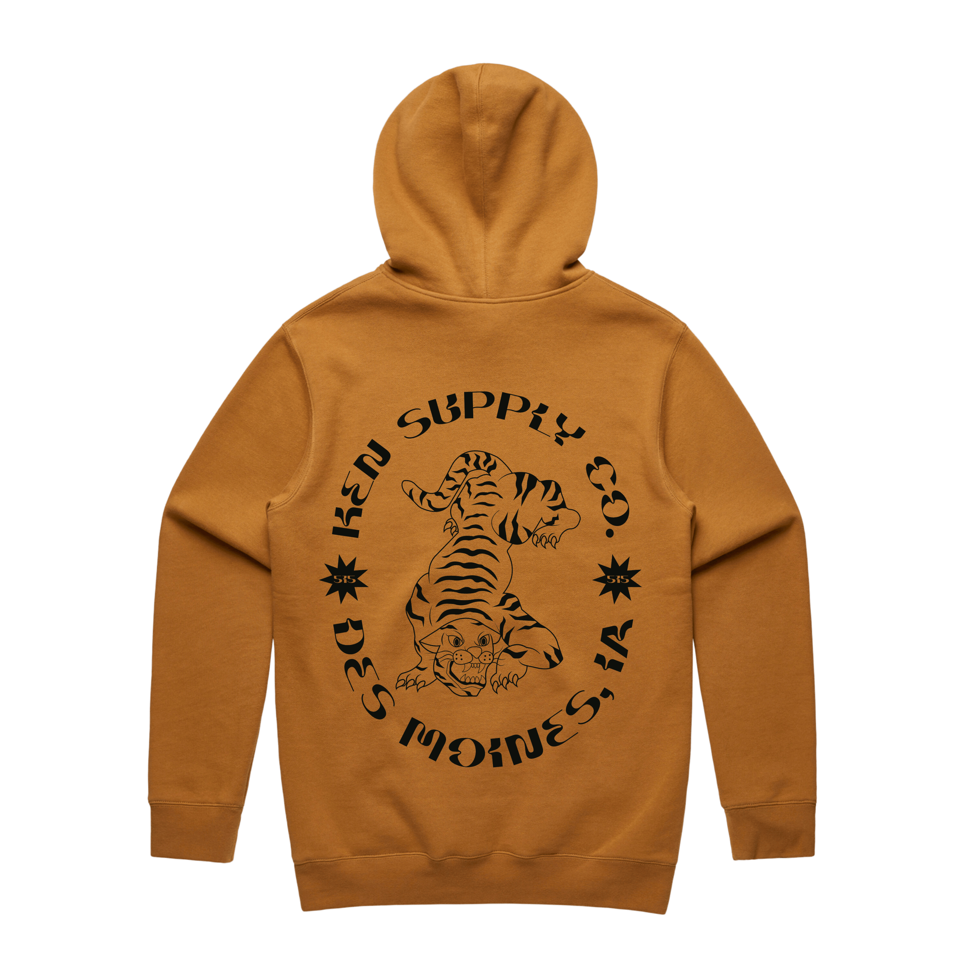 Bold, untamed, and built to last. The Tiger Hoodie features a fierce tiger graphic on the back with Ken Supply Co. and Des Moines, IA, a tribute to strength and resilience. The front keeps it clean with a subtle Ken Supply Co. logo on the left chest.